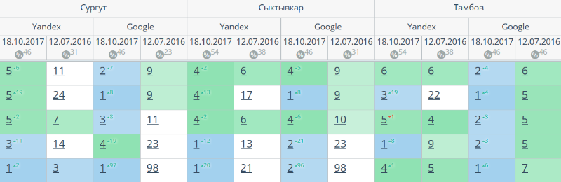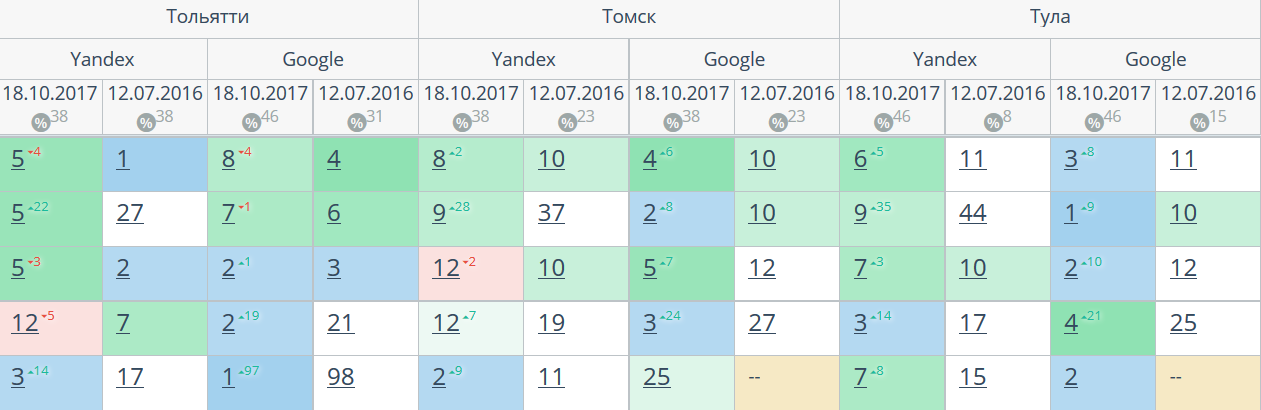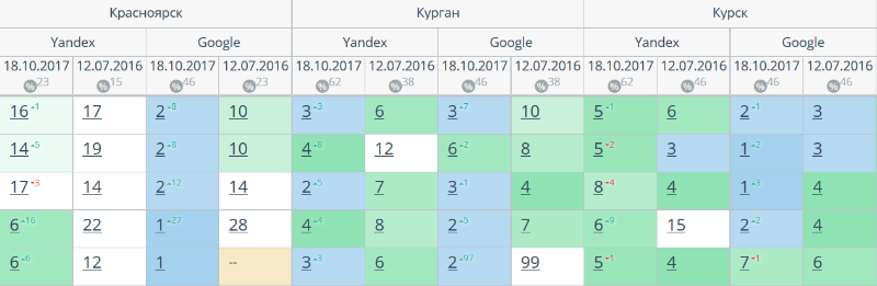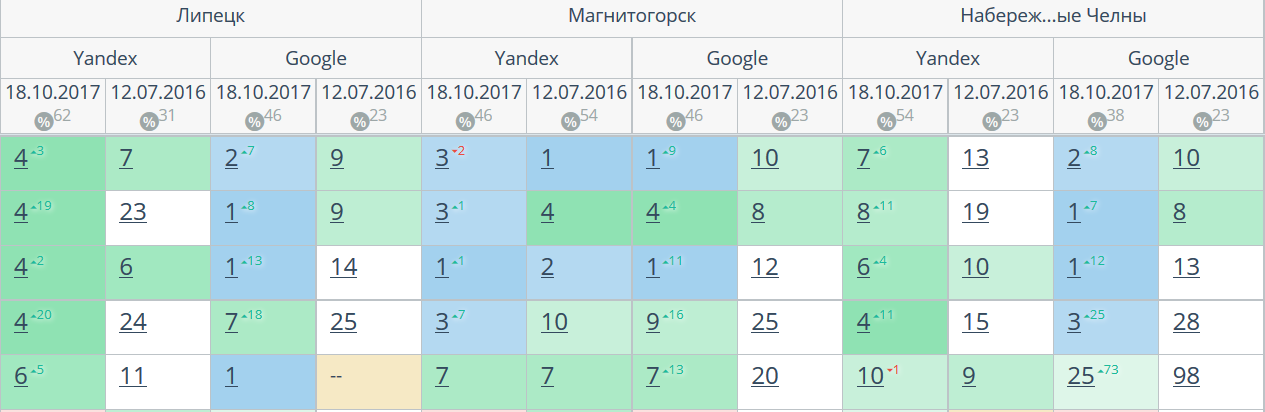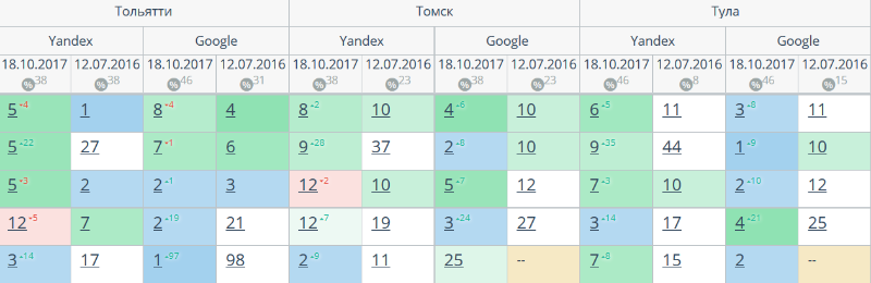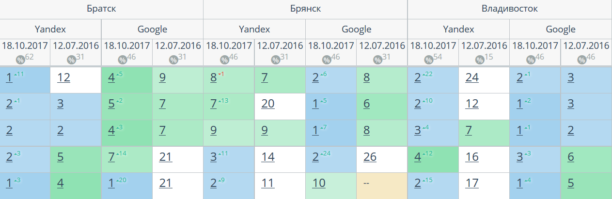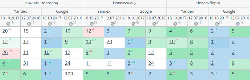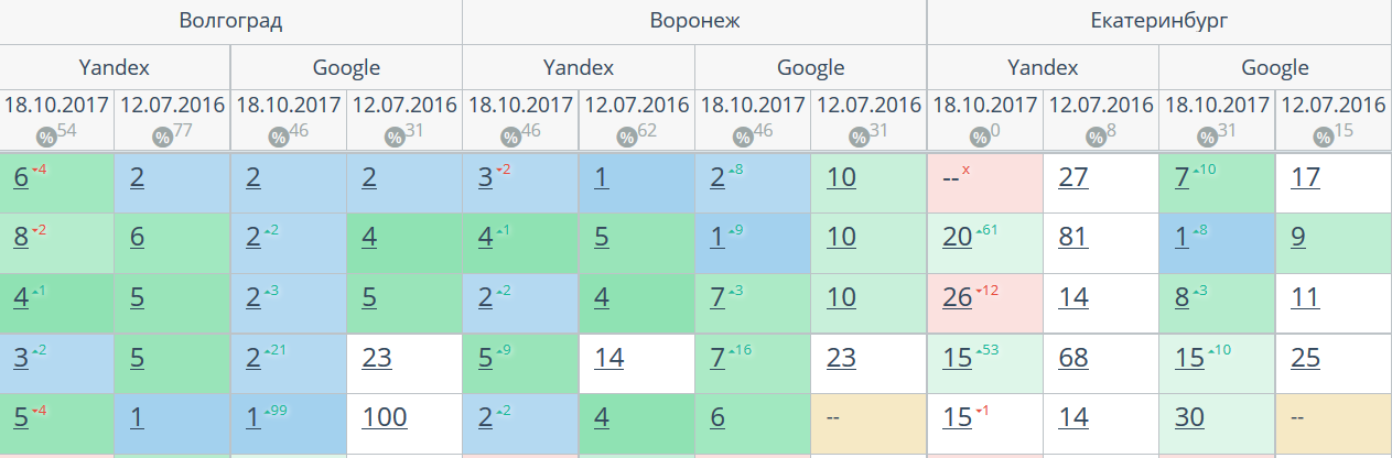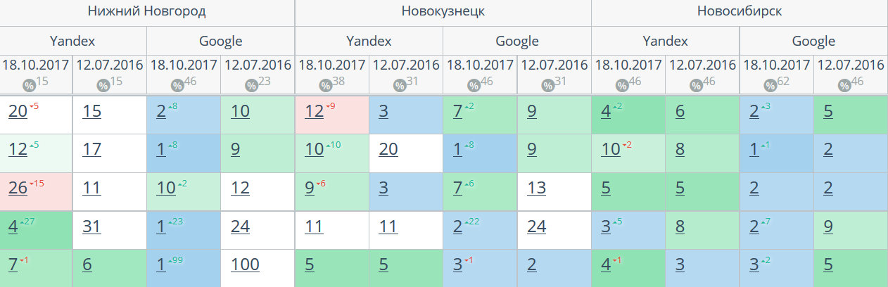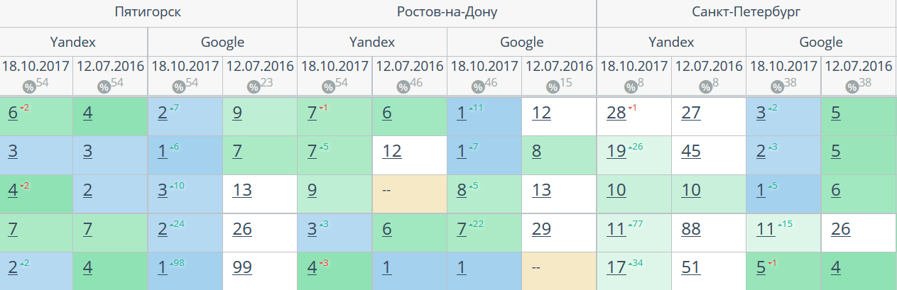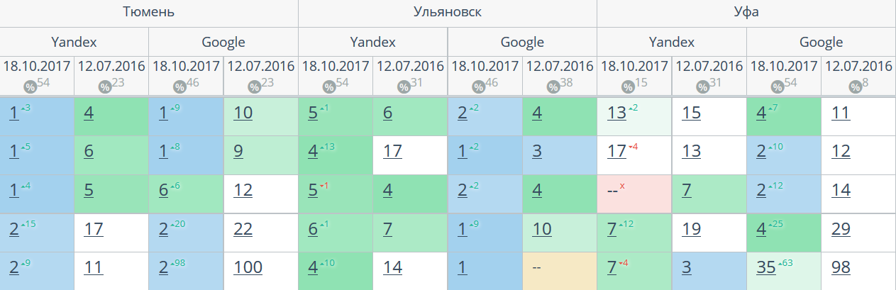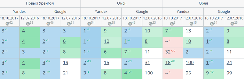 Комплексный интернет-маркетинг: SEO, SERM, SMM и т.д. Время продвижения более 15 месяцев. Продвижение в Яндекс и Гугл: МСК + РФ дало и продолжает давать непрерывный рост позиций по Москве и РФ. Трафик 2500 человек/день. Отчетность и контроль позиций по 54-м самым крупным городам. Ниже позиции 5-ти самых важных запросов интернет-магазина через несколько месяцев после начала работ и сейчас.